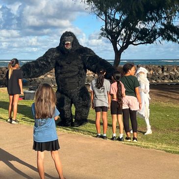 New to Kauai! Dinosaurs and Gorillas at your event. Want some serious attention on social media? Imagine how many "selfies" will be posted from your event with these Giant Loveable Creatures! Come see how much fun it is, and have your picture taken with the dinosaurs!